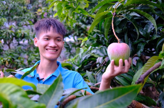 碧桂园田东县乡村振兴帮扶队员黄保强手捧广西田东芒果