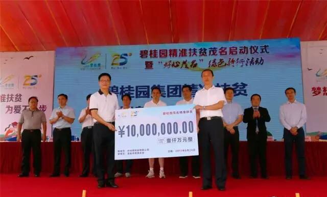 碧桂园集团与茂名市政府签订精准扶贫框架协议书,并捐款1000万元。