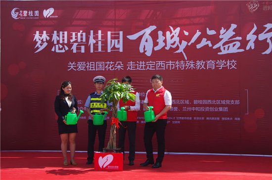 “世上每个人都是被上帝咬过的苹果,没有绝对完美的存在。有些人瑕疵比较大,是因为上帝特别喜爱他的芳香。”有一群孩子,因为上帝的钟爱,而显得有那么一点点与众不同,他们更需要社会的帮助,大家的关心。6月27日,由碧桂园集团西北区域主办、碧桂园中和·领誉承办的“梦想碧桂园·百城公益行”活动在定西市特殊教育学校举行,这是碧桂园继前一天“走进定西交警大队 关怀城市守护者”之后的第二个“走进定西”活动。定西市交警支队城区大队杨建斌警官、碧桂园集团西北区域办公室主任杨国辉先生,碧桂园中和·领誉项目总经理梁锐波先生出席本次活动,兰州及定西各主流媒体都进行了跟踪报道。