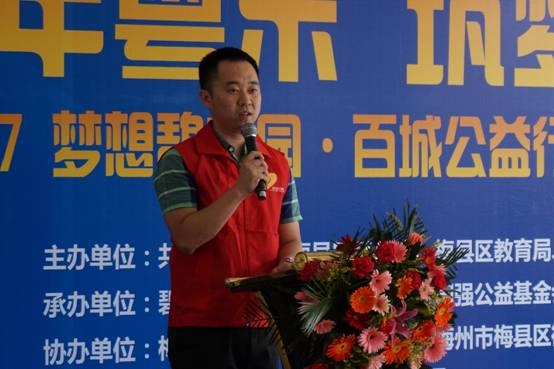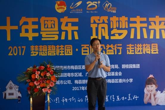 碧桂园粤东区域执行总裁、梅州城市公司总经理徐博在致辞中感谢梅县区团委、教育局、招商局、社会各界爱心志愿者和媒体朋友给予本次活动的关注和支持。他表示,粤东区域还将联动政府部门、媒体及社会爱心人士,进一步推进梅州地区的教育扶贫工作,帮助贫困学生健康成长,创造出彩人生。