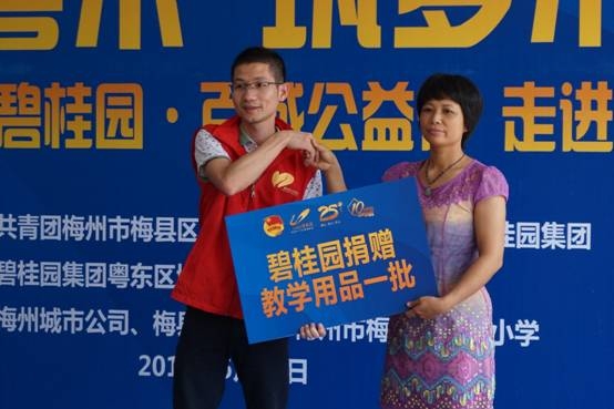 共青团梅州市梅县区委员会书记魏南辉、副书记林鹏,梅县区招商局副局长李卫民,碧桂园粤东区域执行总裁、梅州城市公司总经理徐博,梅县碧桂园项目副总经理钟海丰,德兴小学校长林作勇、副校长李惠萍和温准方,以及近百名师生代表出席了活动。来自梅州市社会各界的爱心志愿者和主要媒体一同见证了爱心捐赠义举。