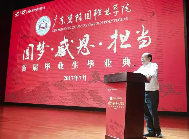 2017年7月1日,广东碧桂园职业学院首届毕业典礼正式举行,290名毕业生就业率达到99.66%,逾六成获基层管理或技术骨干岗位,11位优秀学生月薪突破万元。毕业典礼上,学院创办人杨国强与首届毕业生亲切座谈,讲述自己的人生经历,分享引人深思的人生体悟,鼓励学子立志拼搏,在促进社会进步的过程中实现自我价值。以下为座谈会摘录: