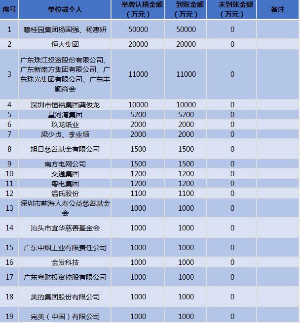 2016年广东扶贫济困日活动省级认捐排前列的企业和个人到账情况公示名单