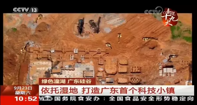 在潼湖湿地的周边,是一个热火朝天的建设工地,这里正在崛起一个全新的头脑产业新城。未来在这里与鹭鸟为邻的将是国内外大批科研人才。依托潼湖湿地良好的自然环境,和位于莞深惠经济圈中心位置,这里正在建设广东省首个科技小镇。