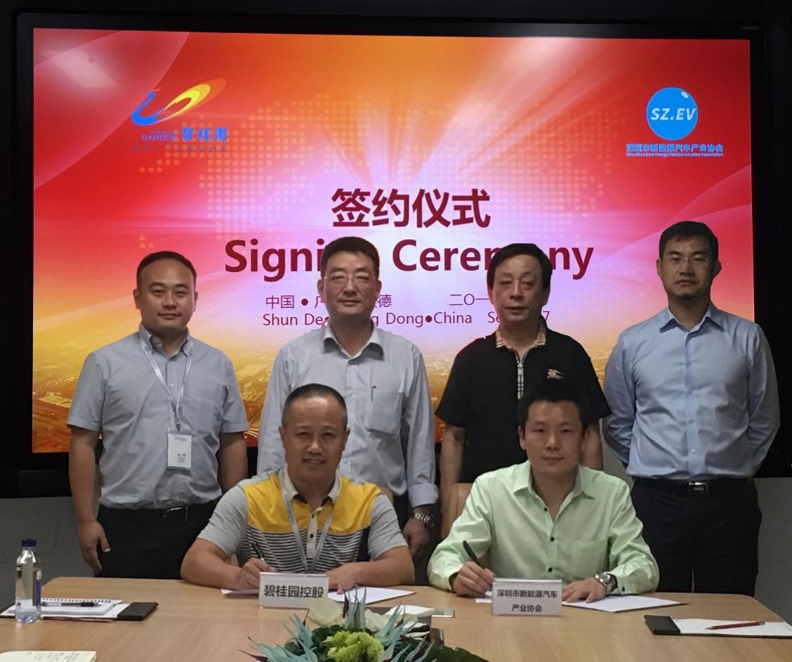 签约仪式在碧桂园集团总部举行,深圳新能源汽车产业协会刘华执行副会长、江世勇博士出席仪式,碧桂园方面出席仪式的有集团副总裁兼产城融合中心总经理刘宁、产城融合中心产业促进部副总经理姚乃龙等。