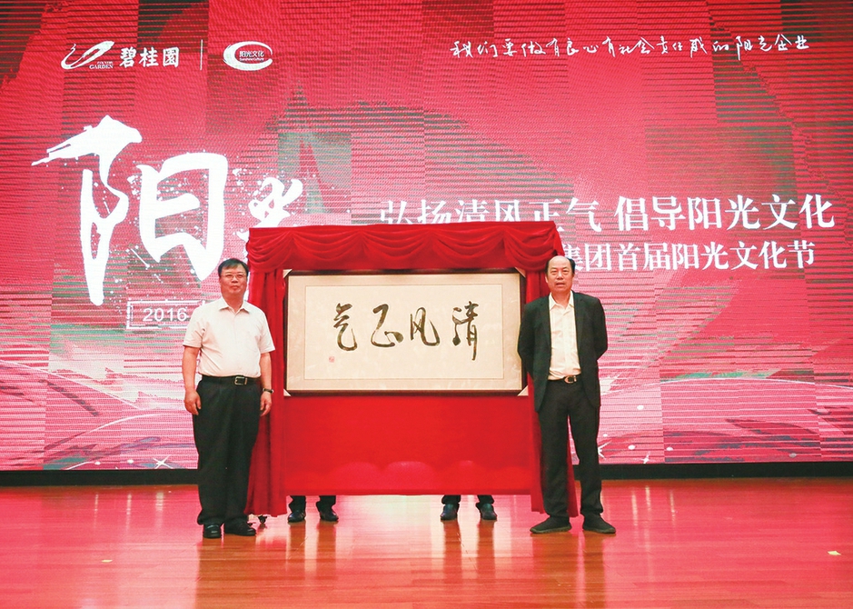 碧桂园集团已连续两年举办“阳光文化节”,大力推行廉政教育和阳光文化,碧桂园集团董事局杨国强主席和集团党委书记、总裁莫斌同志共同为“清风正气”牌匾揭幕,表彰阳光团队和个人,带领管理团队宣读廉政阳光宣言。除了廉政教育,各区域党支部还开展形式多样的系列活动,西北区域党支部、工会、区域办公室举办“一站到底”文化知识竞赛,知识竞赛涉及到工程类、成本类、财务类、开发报建类、营销类等多方面的知识,旨在考察选手的全面性,这就要求比赛选手除了要掌握自己专业知识外,还要去拓展自己的知识面,去全面了解地产知识。通过活动在丰富员工生活的同时,传播集团阳光文化。