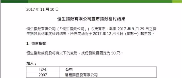 此前,碧桂园在2017年内已经先后被列为恒生中国25指数成份股、摩根士丹利资本国际环球标准指数成份股、恒生综合指数及恒生中国内地100成份股,并在2016年9月被纳入富时中国50指数。
