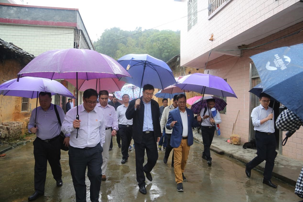 省委农办主任陈祖煌一行雨中调研碧桂园帮扶贫困村恒昌村的新农村建设情况