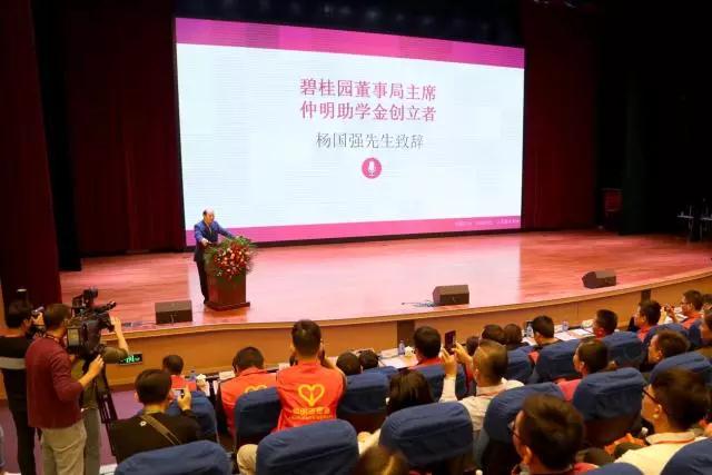 11月19日下午,2017年度仲明助学金颁发仪式暨20周年庆典在广东顺德碧桂园集团总部举行,533名大学生获得年度资助。仲明助学金由碧桂园集团创始人杨国强于1997年匿名设立,至今已经帮助9664名大学生。