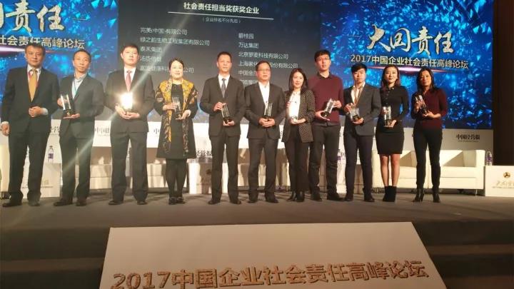 11月21日,由《中国经营报》社主办的“大国责任——2017中国企业社会责任高峰论坛”在北京举行。本次论坛以 “ 大国责任 ”为主题,邀请业内专家以及行业知名企业代表,围绕企业如何参与国家精准扶贫、新时代背景下的企业社会责任、企业扶贫攻坚以及企业新责任等相关问题展开讨论。在本次论坛评选中,碧桂园集团荣获“社会责任担当奖”。