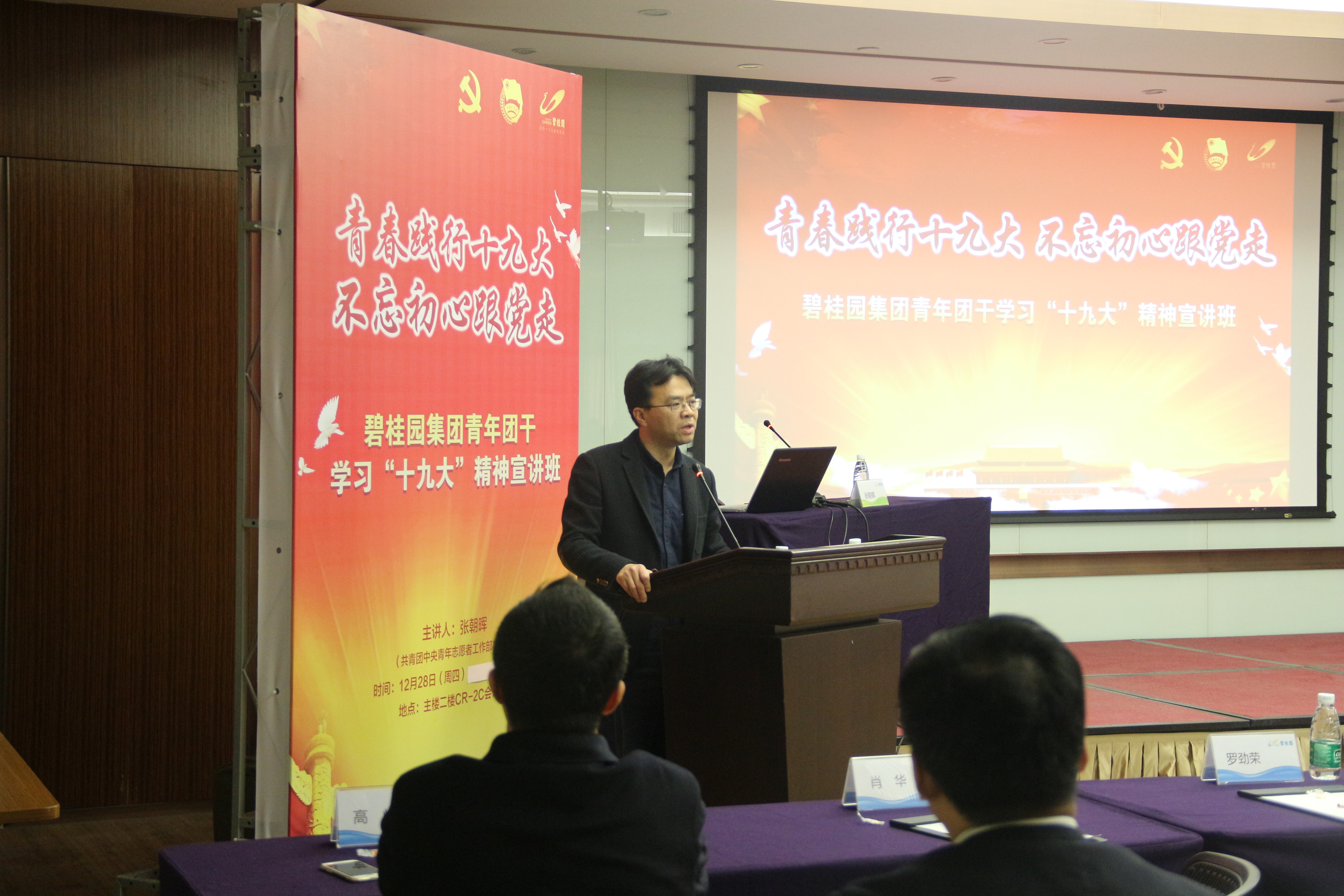 学习贯彻十九大精神,碧桂园集团掀起新热潮。12月28日,碧桂园集团团委邀请共青团中央青年志愿者行动指导中心主任张朝晖莅临顺德总部,从“中国共产党的文化使命”的角度宣讲十九大精神。授课生动活泼、深入浅出,现场座无虚席,碧桂园青年济济一堂,认真倾听,用心记录。