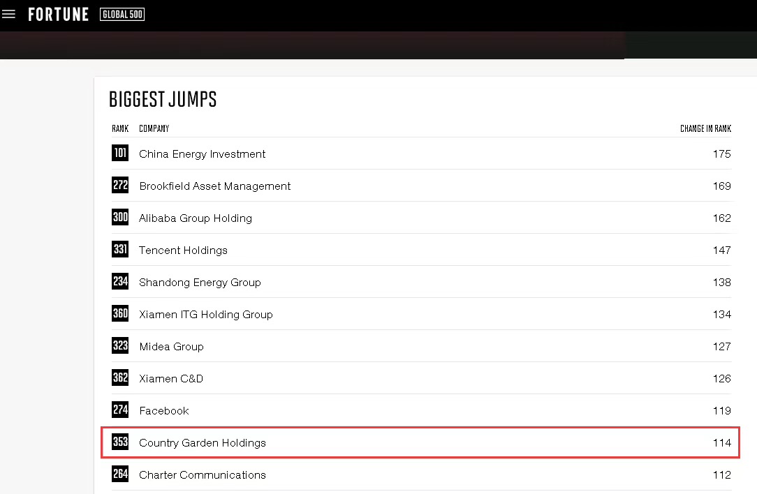 7月19日晚,《财富》发布2018年世界500强排行榜,继去年首次上榜之后,碧桂园集团(股票代码:2007.HK)以335.7亿美元的营业收入再次上榜,并且排 名 跃升114位,至353位,成为榜单中排名提升最快的公司之一,在传统行业实属罕见。