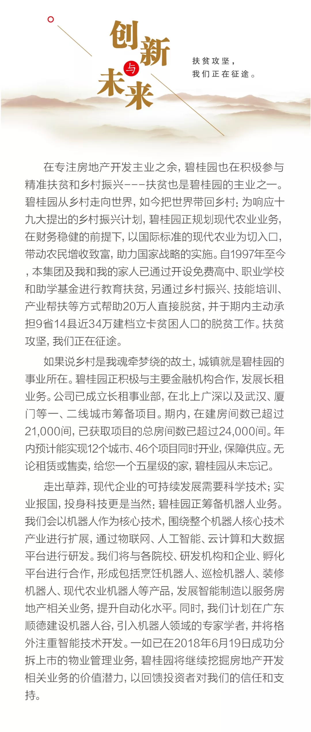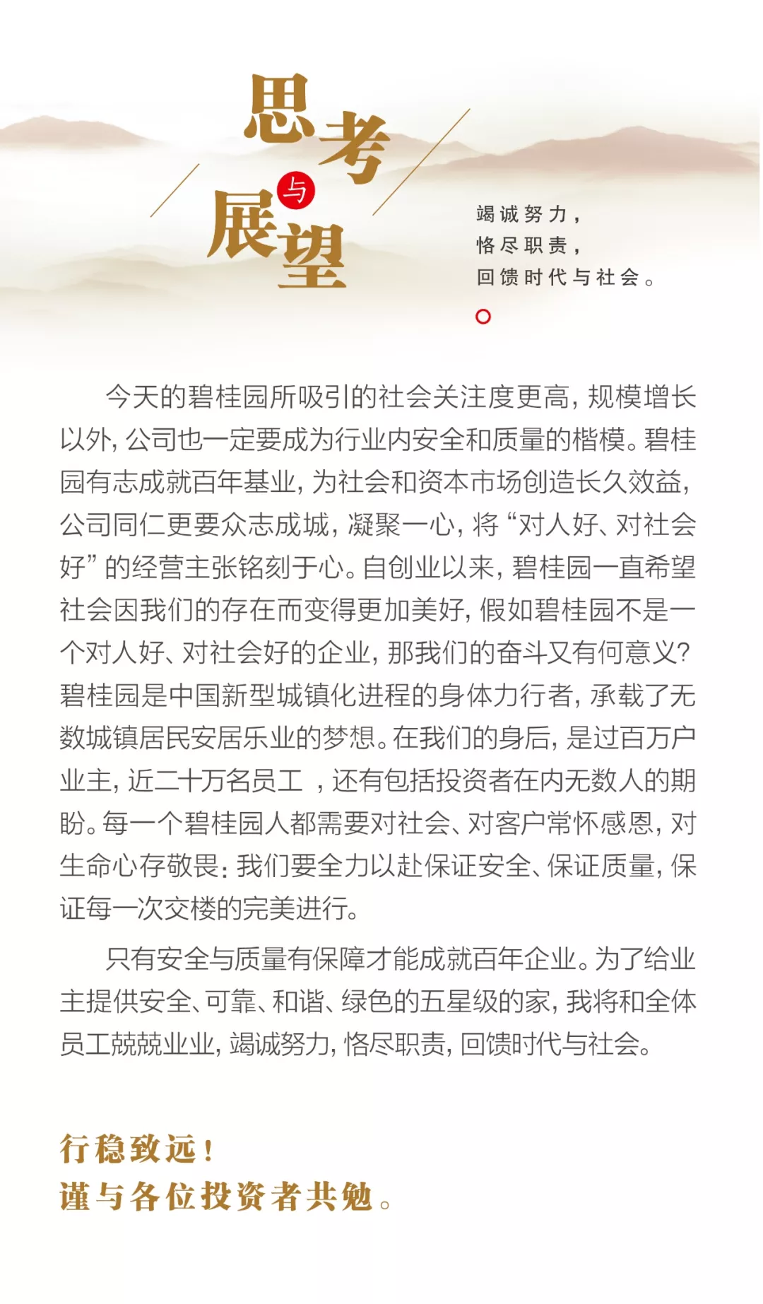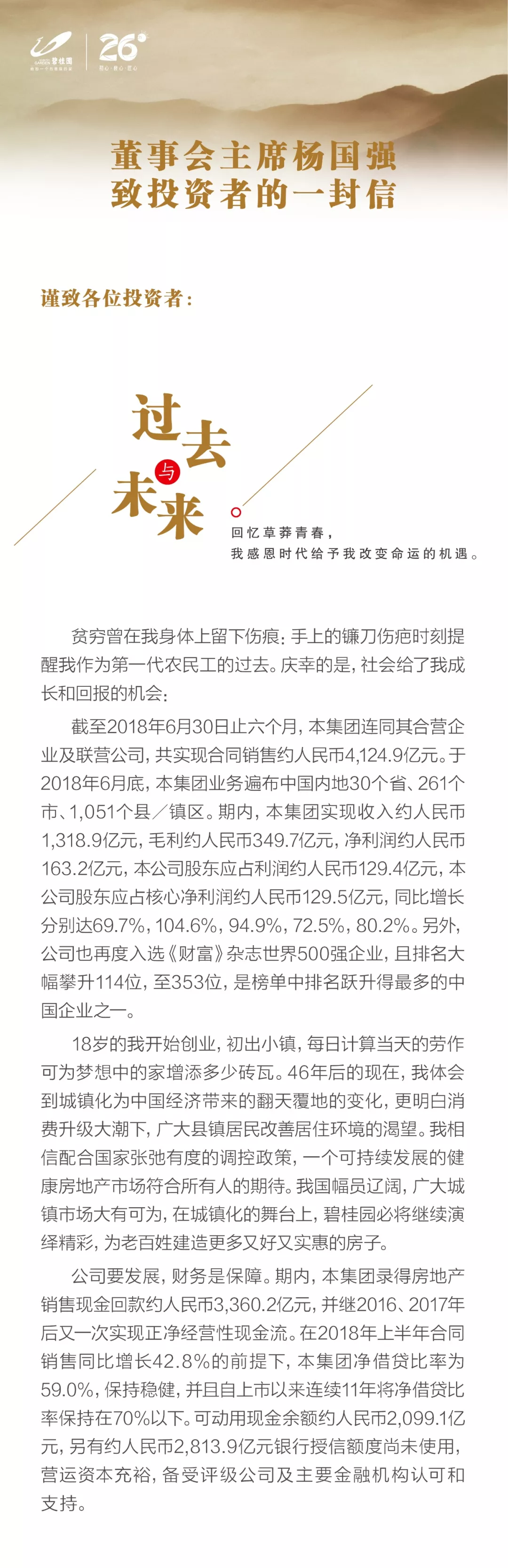 以下为碧桂园集团董事会主席杨国强致投资者的一封信: