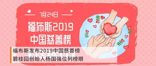 7月24日,碧桂园集团创始人、董事会主席杨国强及其家族登上2019年《福布斯》中国慈善榜,并以16.5亿元的捐赠总额位列榜单第二名,这是杨国强家族第十一次入选榜单。在规模稳健发展、业绩快速增长的同时,碧桂园及其创始人也十分热心参与公益慈善、回报社会。截至目前,碧桂园集团及其董事会主席杨国强、联席主席杨惠妍为全社会捐款累计超过55亿元,涉及党建扶贫、教育扶贫、产业扶贫、就业扶贫等各个方面。