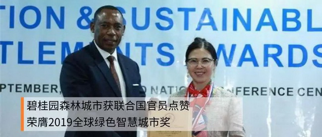 联合国非洲经济委员会负责人奥利弗·钦甘亚为碧桂园森林城市颁发“飒飒奖-全球绿色智慧城市奖”,并高度认可森林城市的绿色环保规划、建筑体系,以及对智慧城市的综合规划和全方位应用。这是森林城市自2016年至今第4次获得此项国际殊荣。