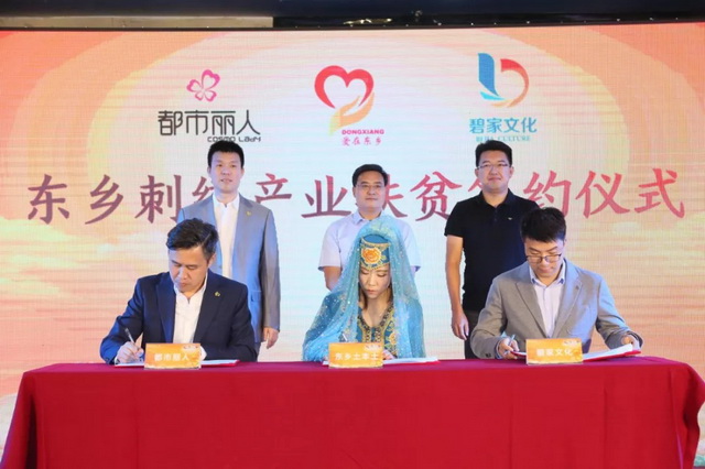 今年5月20日,碧桂园进一步联合社会各界的力量发起“社会扶贫共同体”,汇聚社会的力量共同倡导消费扶贫。广东都市丽人实业有限公司与东乡族自治县土本土商贸有限公司、佛山市南海区碧家文化传播有限公司签署战略合作协议,共同致力于改良、开发东乡刺绣产品,开展技术培训,建设生产线,扩宽东乡刺绣的销售渠道。