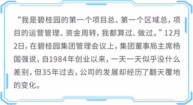 目前,碧桂园已落子中国内地31个省、自治区、直辖市共1235个县镇的2000多个项目,是行业内布局最广泛的房企。杨国强要求,全集团要一起总结这2000多个项目的经验与教训,不断提升竞争力,在未来走得更好。