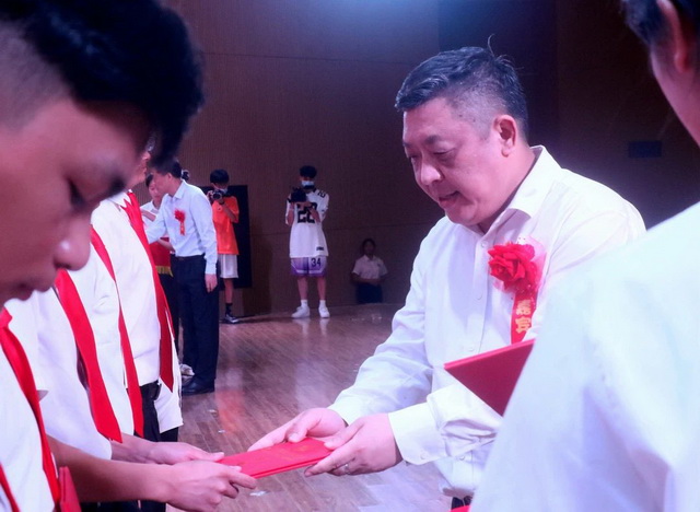 国强公益基金会副理事长、国华文旅集团总裁王鹏为优秀毕业生颁奖