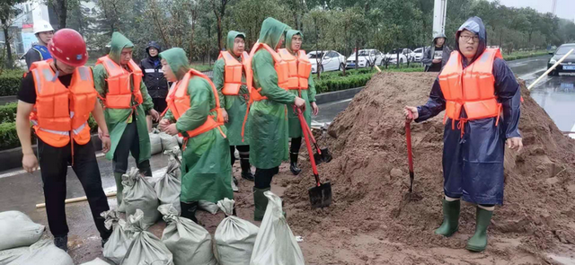 ▲因鹤壁部分乡镇河流存在决堤风险,鹤壁碧桂园凤凰湾项目组织工人,