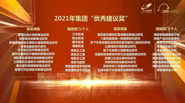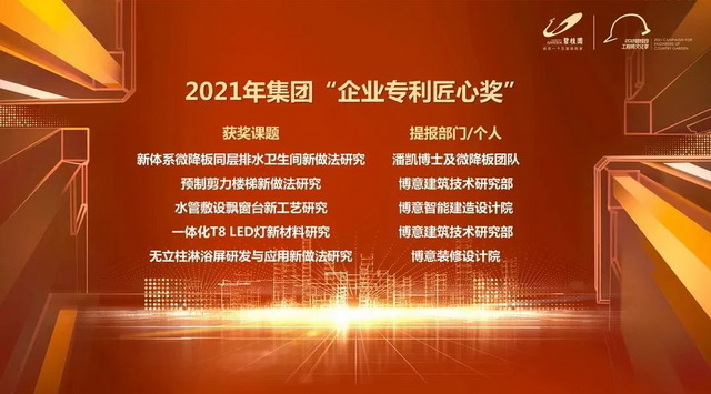 当天的首届集团“企业专利匠心奖”颁奖仪式,也颁发了5个“企业专利匠心奖”、20个“优秀建议奖”,鼓励全体员工发挥钻研精神,带来更多品质、成本更优的设计和创造。