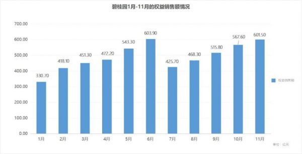 12月4日,碧桂园(02007.HK)披露了11月的销售数据。公告显示,碧桂园在8、9、10月连 续 录得同比超40%的增长后,11月份销售增速再攀新高,单月实现归属公司股东权益的合同销售金额约601.5亿元,同比增长78.22%。