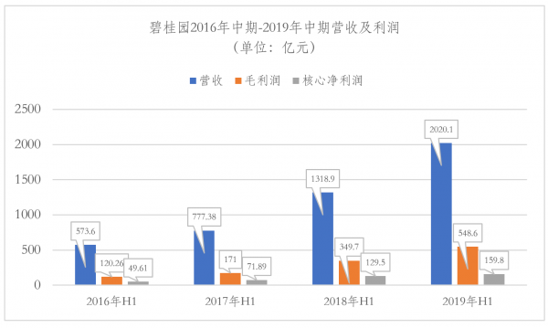 销售业绩保持稳定增长的同时,碧桂园盈利水平也在稳步提升。2019年上半年,伴随着前两年销售业绩的持续释放,碧桂园结转收入创新高,营业收入、毛利润、净利润等核心指标均实现大幅增长。其中,营业收入约为2020.1亿元,毛利润548.6亿元,净利润230.6亿元,分别同比增长约53.2%、56.9%和41.3%。