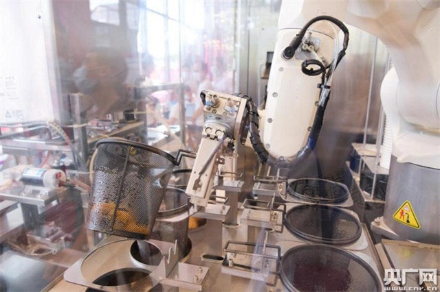 机器人正在自动“炸薯条”(央广网记者官文清 摄)