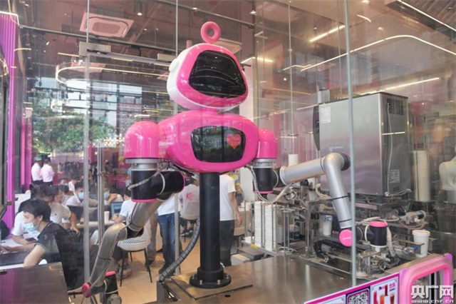 咖啡机器人出餐效率达45秒/杯。(央广网记者官文清 摄)