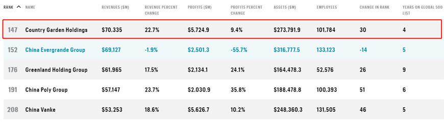 榜单显示,2019年碧桂园实现了703.35美元(4859.08亿元人民币)的收入,全球排名第147位,与2017年初次上榜的467位相比,前进了320位。在这四年时间里,碧桂园演绎了强者恒强的发展逻辑,紧随着中国城镇化的步伐,保持稳健且高质量的增长,稳居行业龙头位置。截至2019年底,该公司已在中国内地布局了2000多个项目,覆盖31个省、自治区、直辖市,282个地级市和1299个区县,为广大人们群众提供物美价优的住房产品。