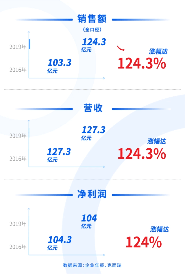统计显示,2016~2019年,碧桂园销售额从3088.4亿元增长149.8%至7715.3亿元(第三方统计全口径数据);营业收入从1530.9亿元增长至4859.1亿元,涨幅达217.4%;净利润从136.6亿元增长至612亿元,涨幅达348%。