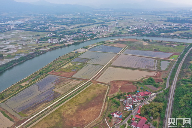 俯瞰数百亩稻虾田。(央广网记者 官文清摄)