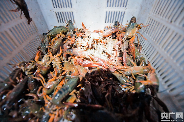新鲜出笼的小龙虾。(央广网记者 官文清摄)