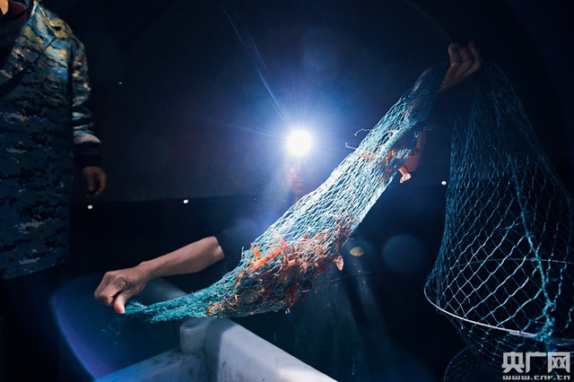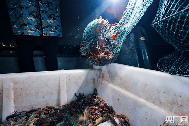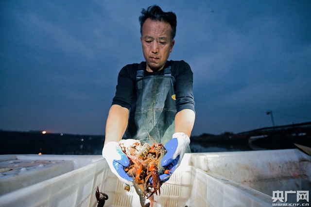 为了能让小龙虾尽早端上消 费 者的餐桌,养殖户需要在凌晨将小龙虾捕捞上岸。(央广网记者 官文清摄)