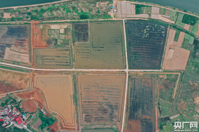 远远望去,规整的稻虾田自成一景。(央广网记者 官文清摄)