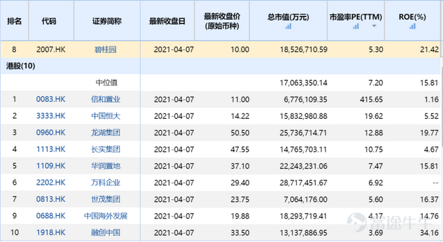 2017年,碧桂园又被正式纳入恒生指数成份股。Wind数据显示,在香港上市的前10大房地产公司中,碧桂园的市盈率仅高于中国海外发展和融创中国,低于7.20倍的行业中位值。更大幅低于恒生指数16.82倍的市盈率。