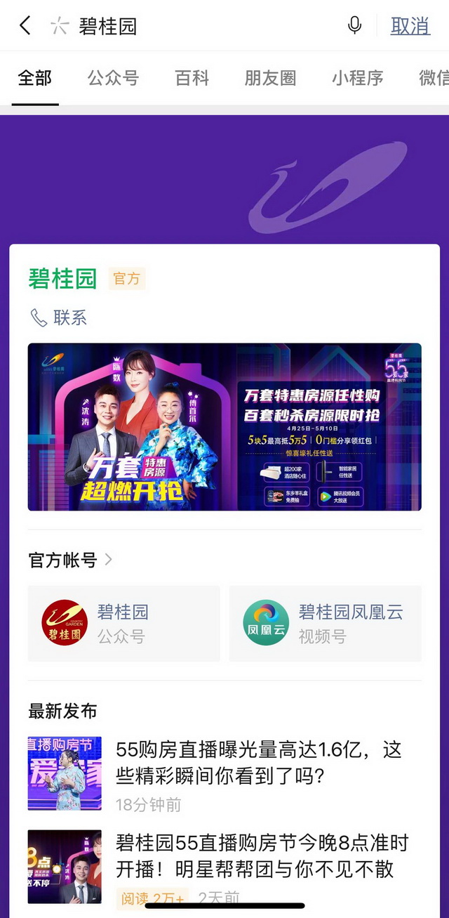 微信搜一搜“碧桂园”品牌专区