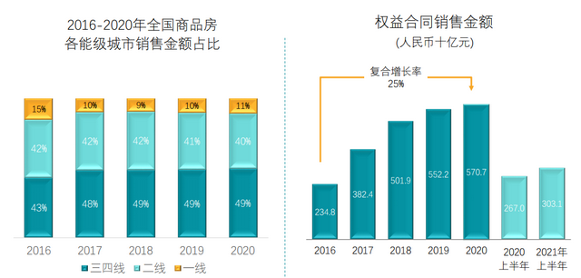 2021年上半年,碧桂园共实现归属本公司股东权益的合同销售金额约人民币3030.9亿元,归属本公司股东权益的合同销售面积约3451万平方米,继续位居行业前列。