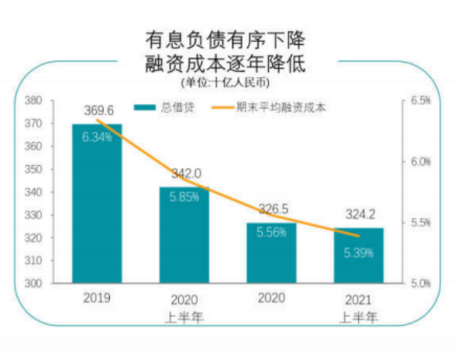 有息负债的降低也受惠于融资渠道的畅通带来低融资成本。上半年期末,碧桂园融资成本约为5.39%,较去年底下降17个基点。