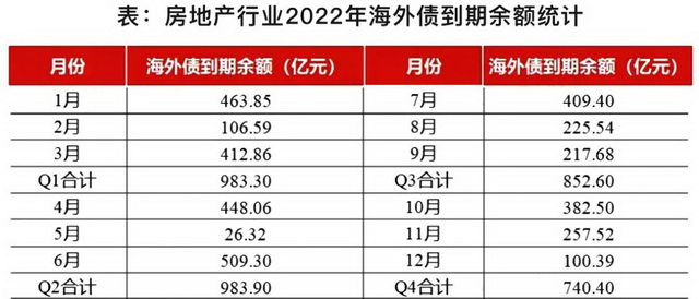 据中指研究院统计的数据显示,2022年,房企海外债到期为3544.2亿元,其中第一季度到期为983.3亿元,债务到期高峰期在即。